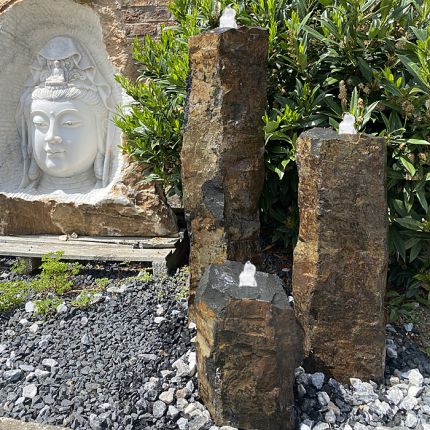 Quellsteinbrunnen 3er Set Basalt 90Quellsteingruppe mit 3 Basalt Quellsteinen in den Höhen 90 / 60 / 30cm.