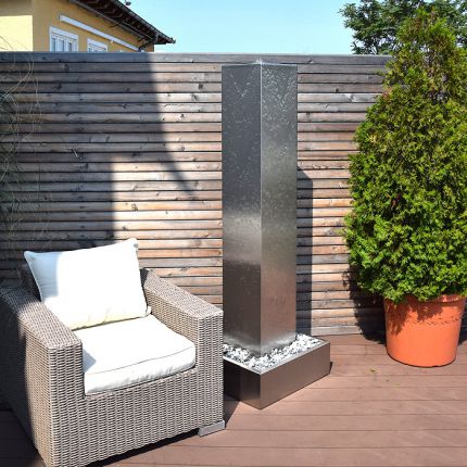 Terrassenbrunnen Edelstahl Bochum 60Designbrunnen aus V4A Edelstahl Höhe ab 125 bis 205cm - versandkostenfrei