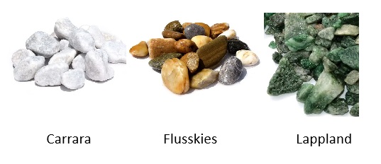 Optional wählbar: Dekokies - Lappland Green, Carrara Marmor oder Flusskiesel